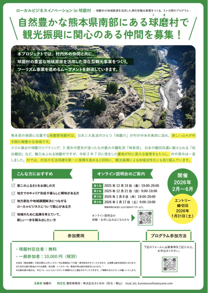 – 球磨村の地域資源を活用した滞在型観光事業をつくる、5ヶ月間のプログラム –