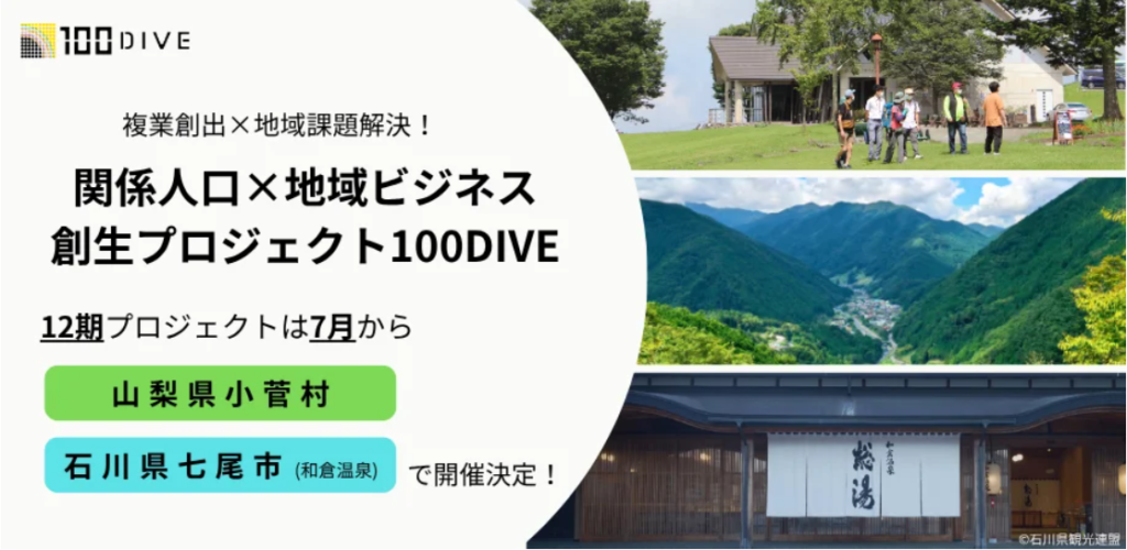 【参加者募集】地域に飛び込み、ローカルビジネスを生む「100DIVE」。山梨県小菅村と石川県七尾市(和倉温泉)を舞台に、第12期プロジェクト始動!